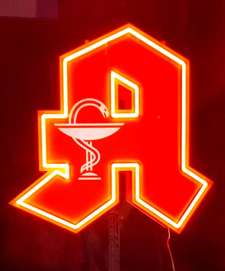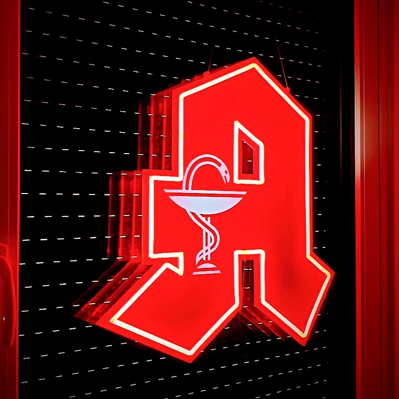 Das leuchtende "A" in der charakteristischen Schriftart ist das Erkennungszeichen für eine Apotheke. Dieses leuchtende Apotheken-A können wir Ihnen nun in stromsparender LED-Technik in hell leuchtender Neon-Optik anbieten.