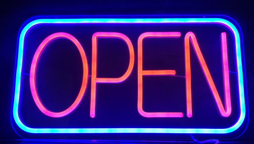 OPEN Sign mit LED Technik, 5V USB Anschluß für den mobilen Einsatz b.B. an einer Powerbank. Sieht aus wie ein