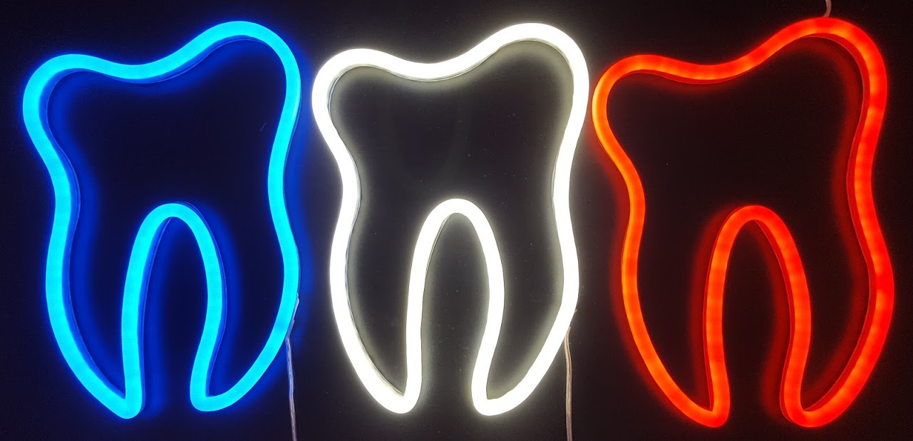 Sie können sich nicht entscheiden? Unsere modernen LED-Leuchtzähne und LED-Zahnimplantat Symbole stehen dem klassischen US-Neon Sign in Nichts mehr nach. Im Gegenteil, die moderne Technologie ist wirtschaftlich und sicherheitstechnisch sogar überlegen.