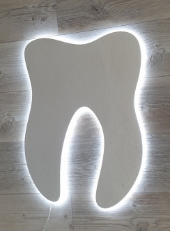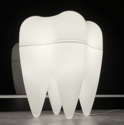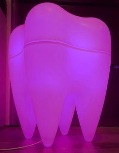 Light-up tooth for dental practice window. Leuchtzahn für Fenster der Dental-Praxis, ZAP